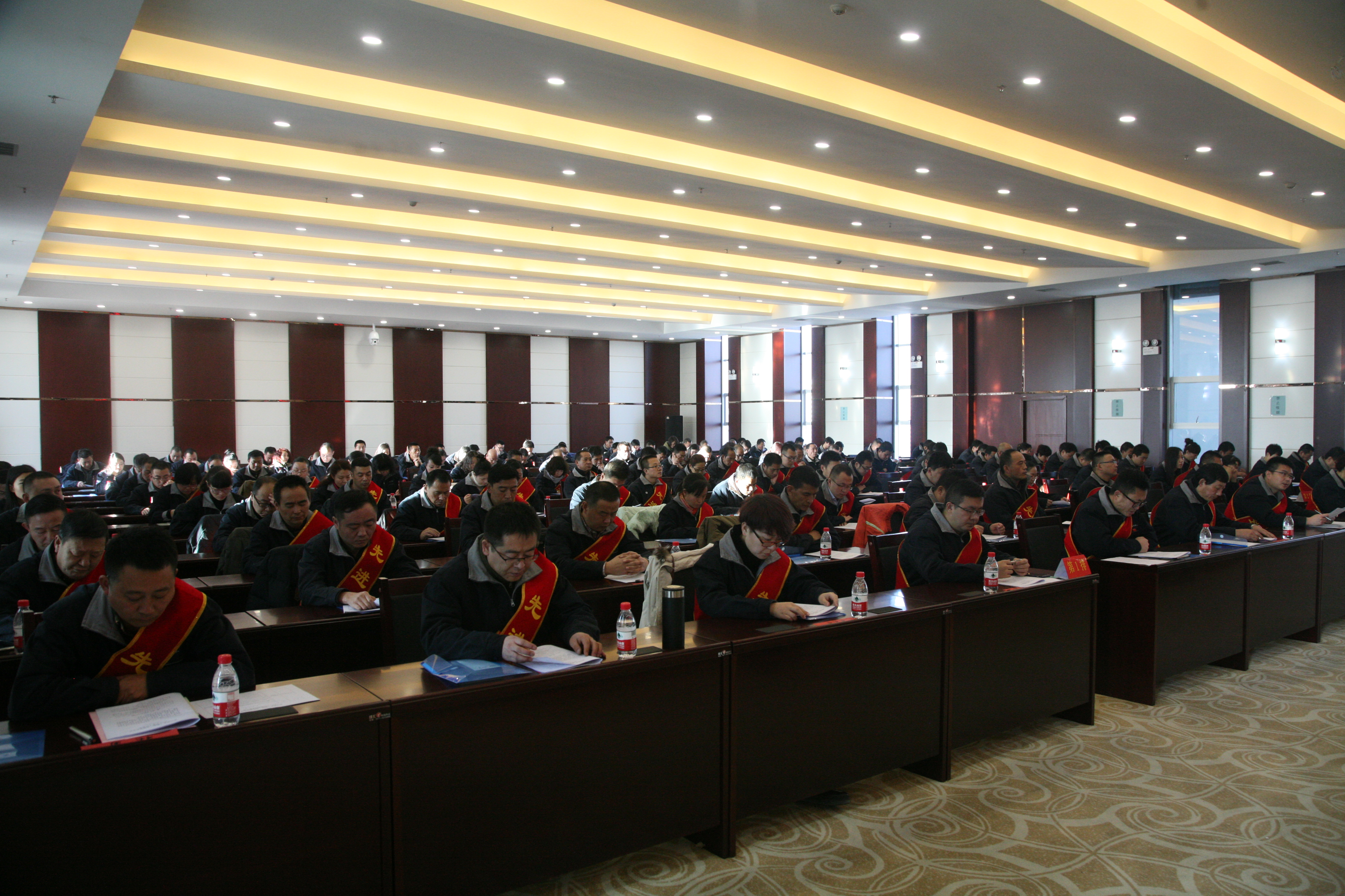 图为:公司领导为获得先进个人的70名职工颁奖。
