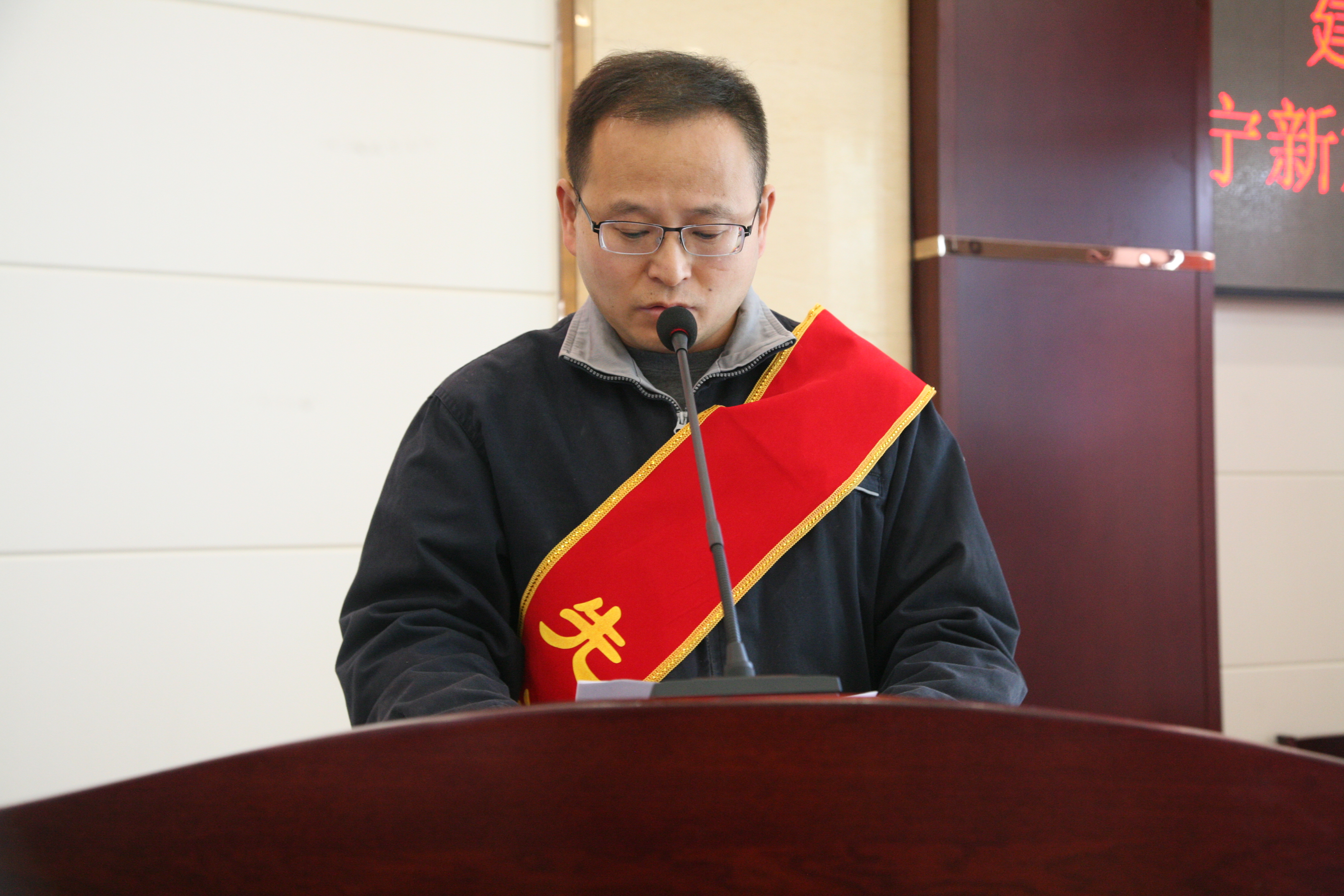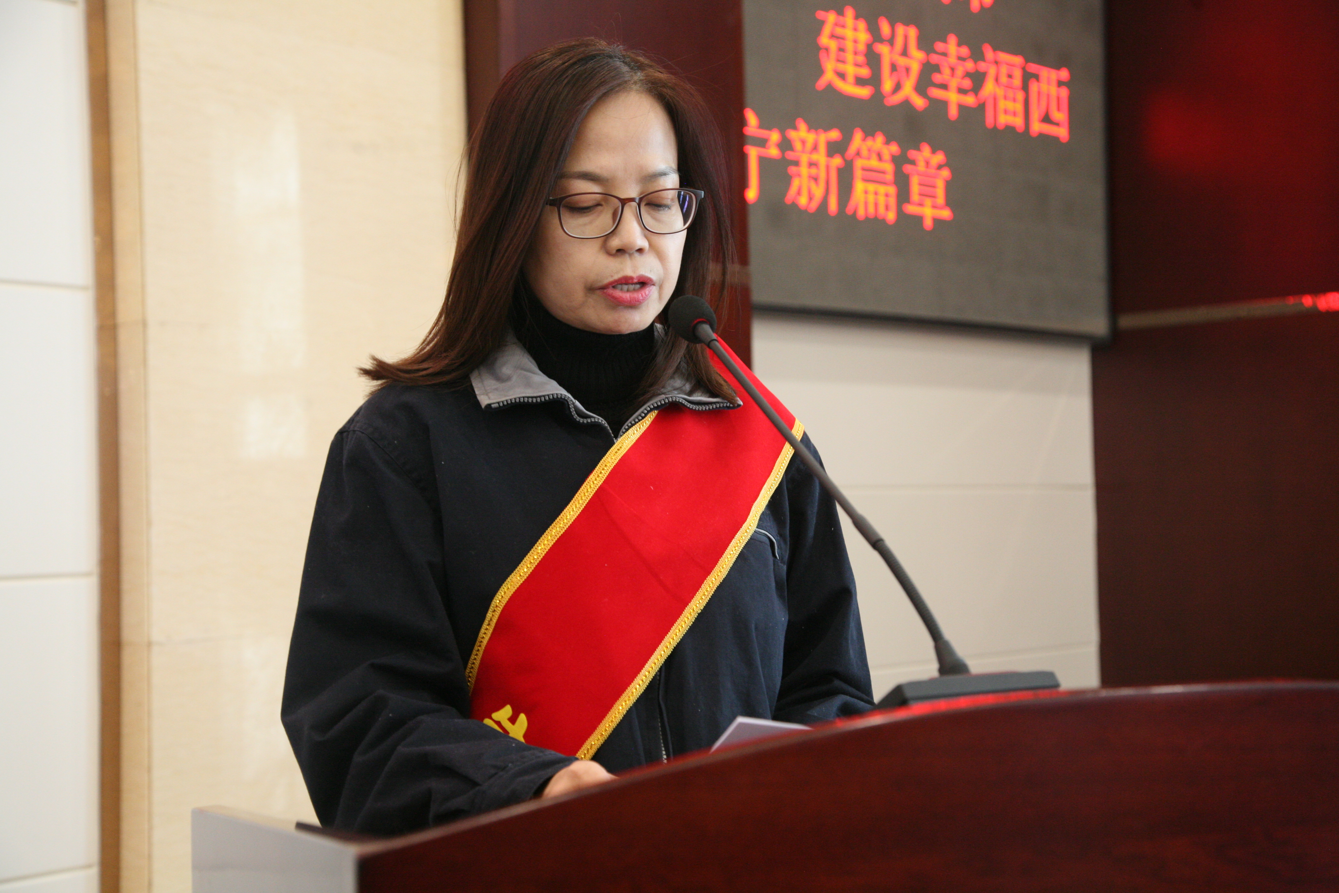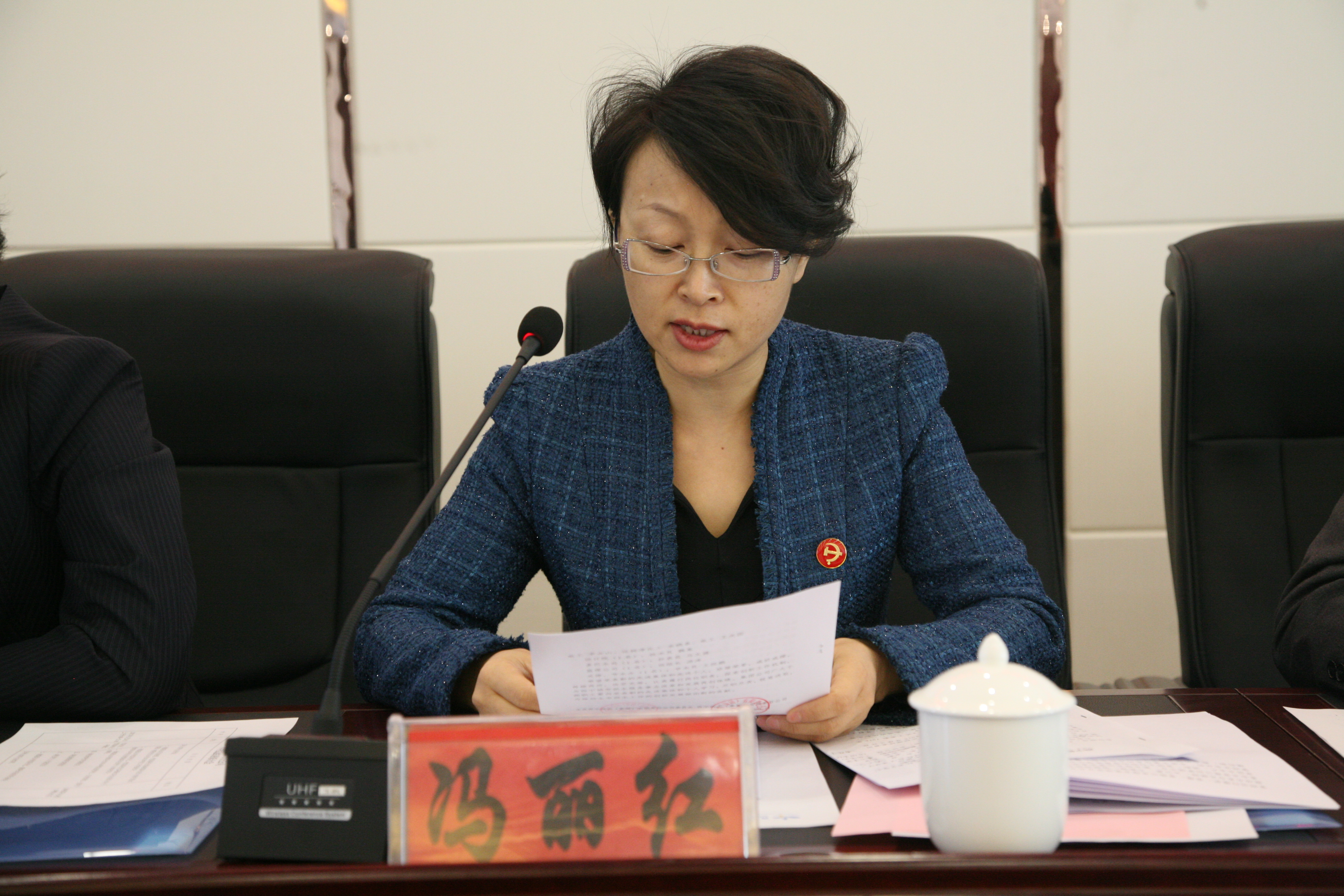 图为:党委副书记、纪委书记冯丽红同志主持大会。