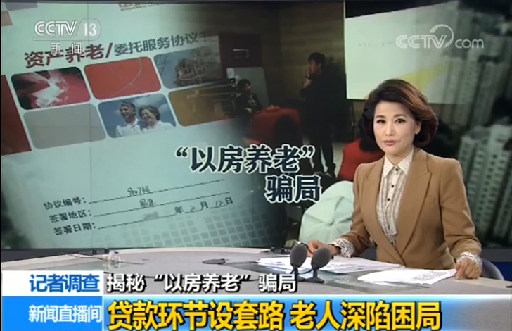 舒锐:很多不法分子对“以房养老”进行各种演绎,甚至打着国家政策的旗号,以权威机构为“噱头”蒙骗老人。比如,此前一家名为“中安民生养老服务有限公司”的机构向老人们兜售所谓“以房养老产品”,就是打着国家政策鼓励的旗号,宣称“以房养老是政府大力扶持的产业”。但实际上,他们说的“以房养老”,和国家鼓励的以房养老,根本就不是一回事。