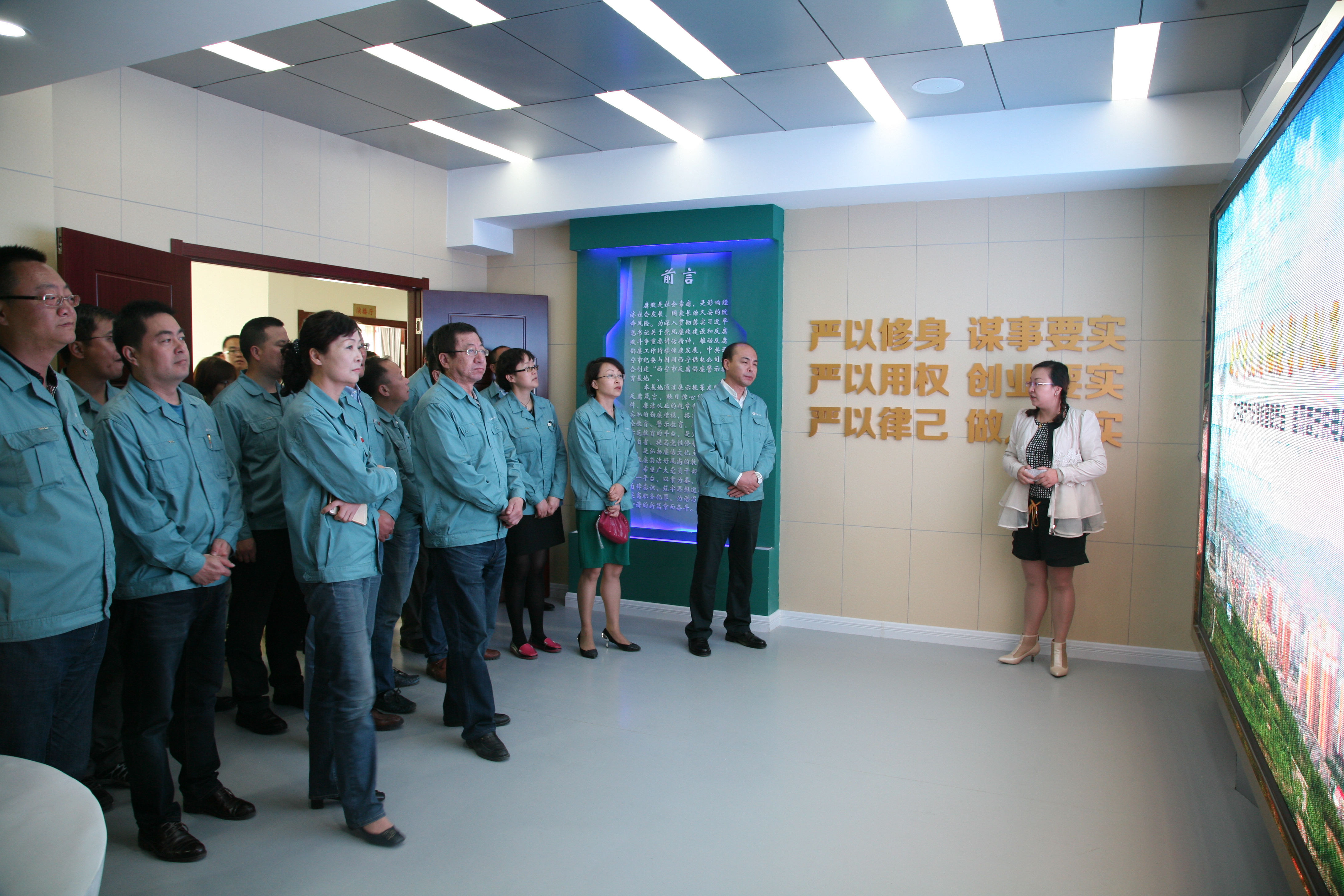 在教育基地讲解员的带领下,大家认真仔细观看并听取了“直面腐败、严守法纪”、“职务犯罪、歧路悲歌”、“齐抓共管、牢筑防线”三个篇章6个小节的内容。并通过声光电、视频、图片等方式观看了“前车之覆”、“腐败之殇”等全国及我市典型腐败案例。从一幅幅发人深省的图片、一个个鲜活的案例、一句句发自肺腑的忏悔中,大家切身感受到腐败行为的严重危害,深刻认识到“伸手必被捉”的必然结果。