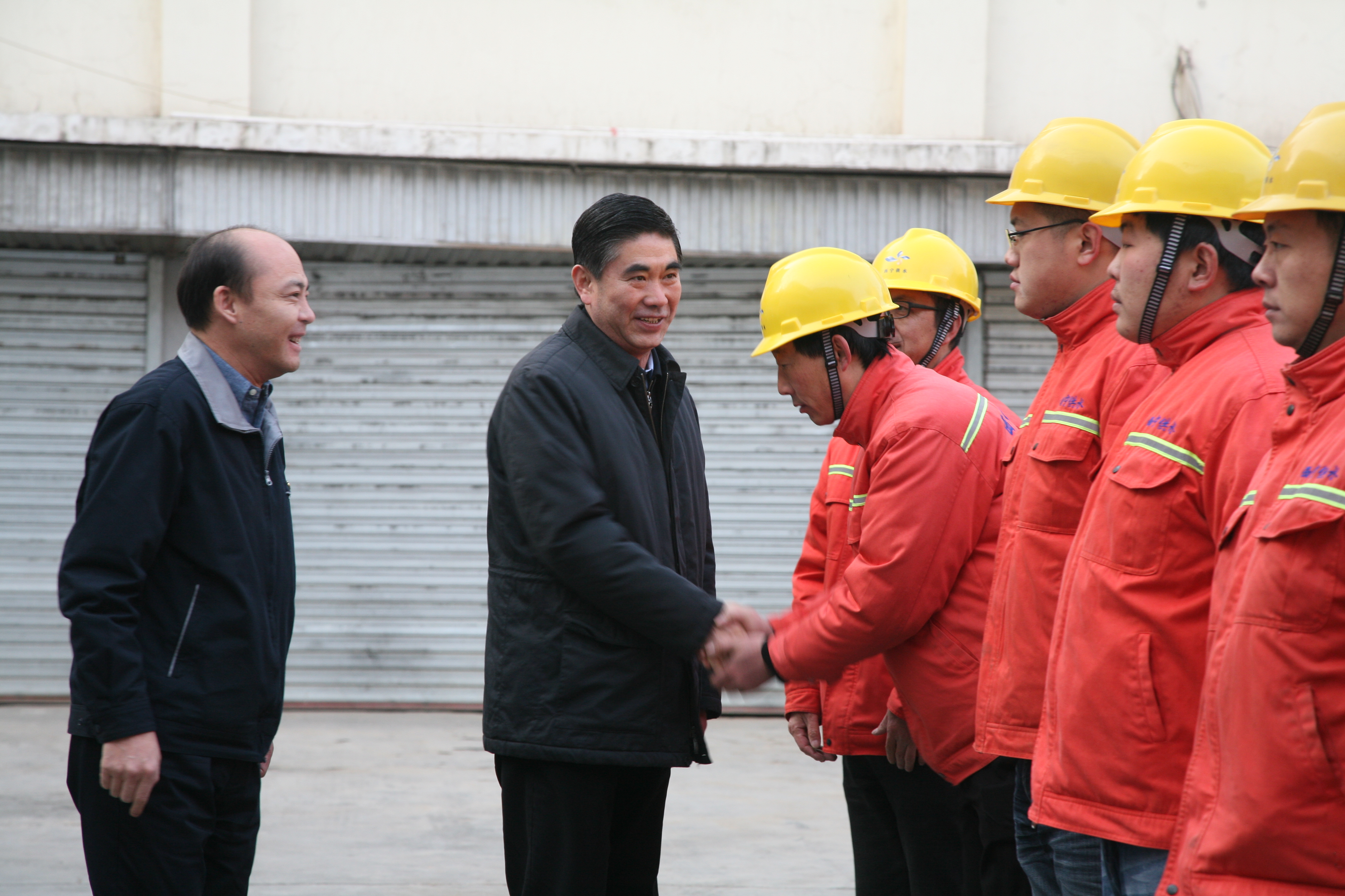 图为:省委副书记、市委书记王建军亲切的慰问巡线大队员工,为他们送上节日的问候,同时嘱咐他们在巡线过程中要注意自身安全。