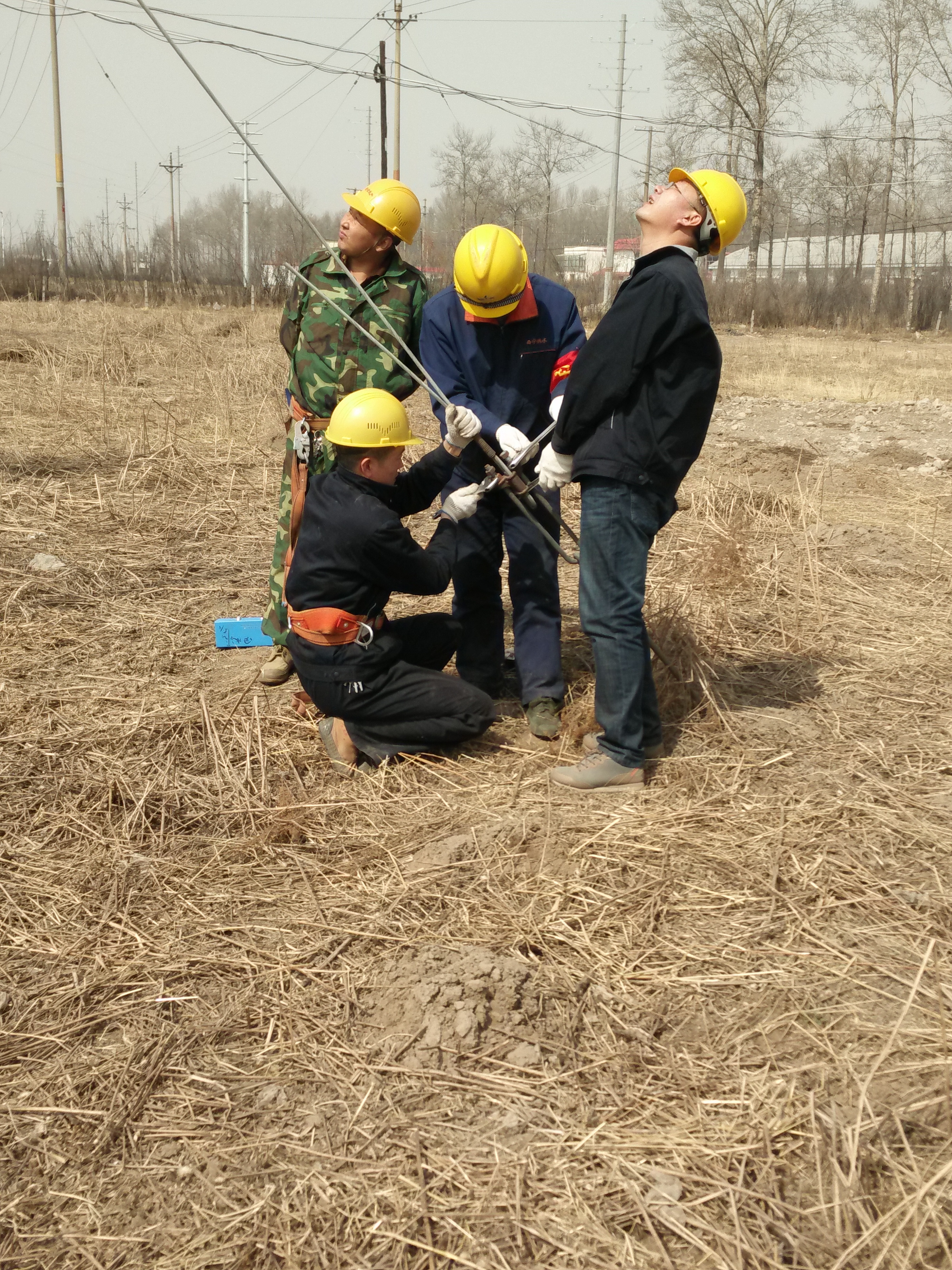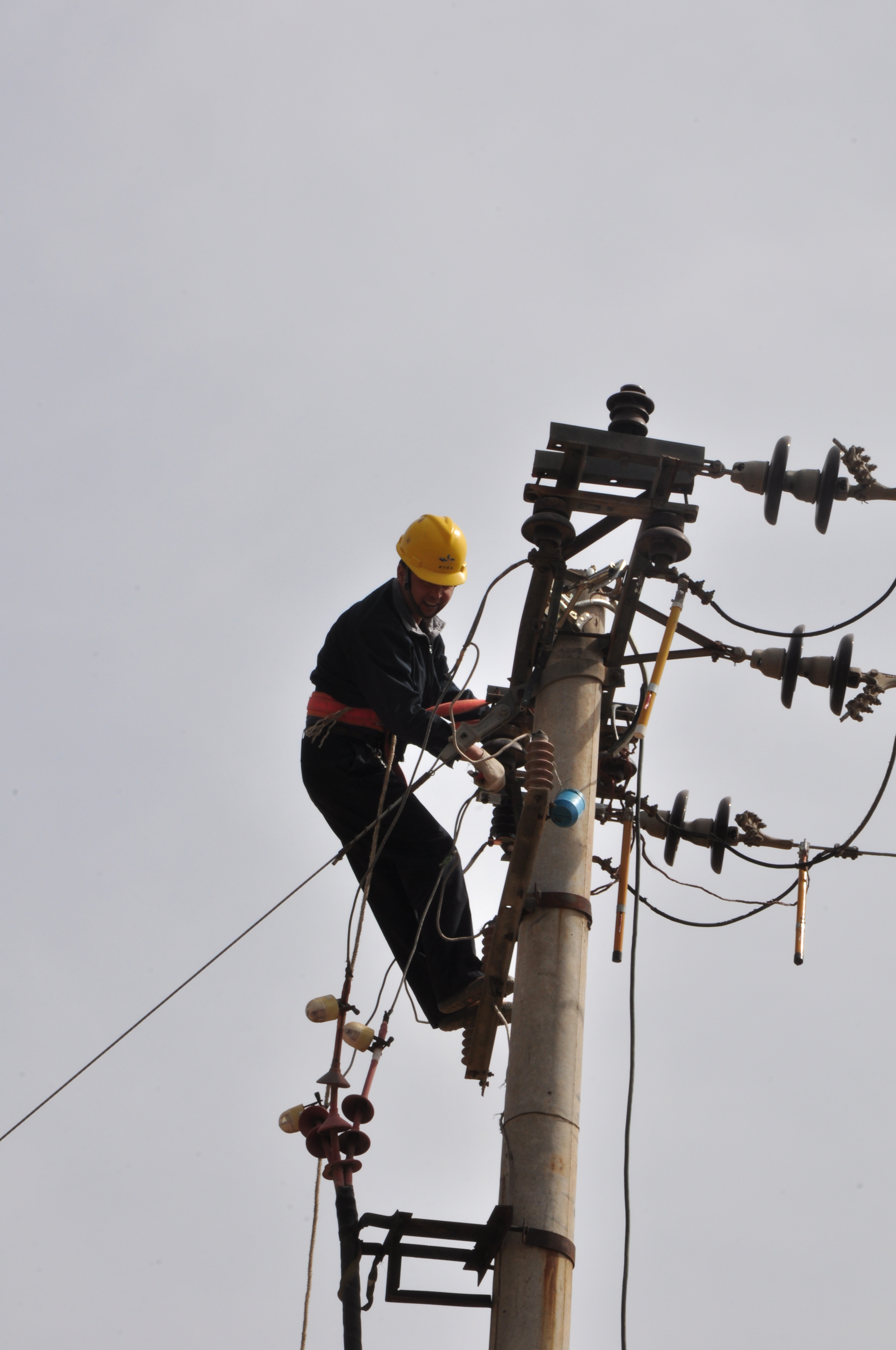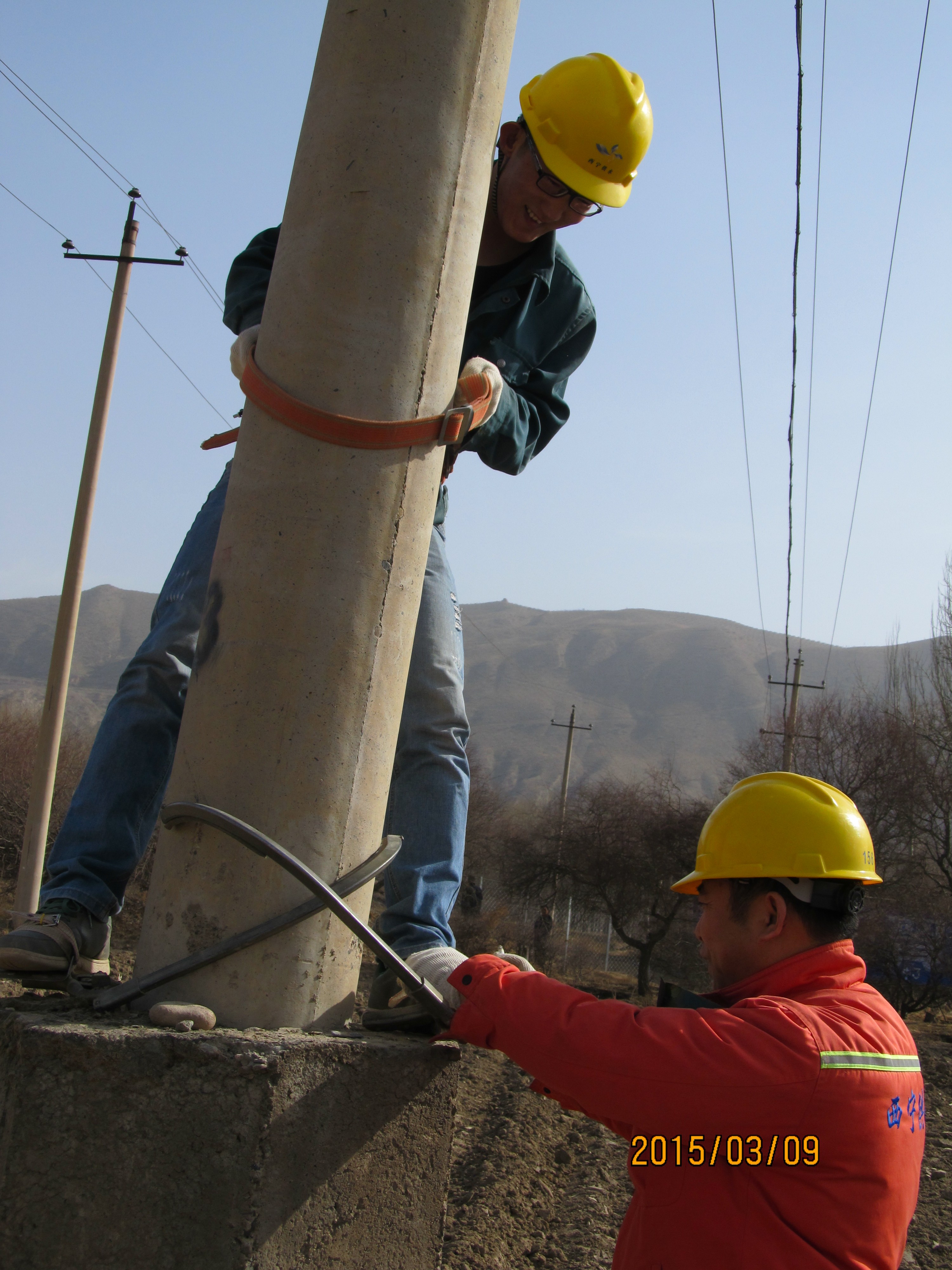 3月12日、13日,四水源对配电设备及365比分网_36587_365日博登录 设施进行清扫检修。图为:大通水厂电工正在对电杆拉线加固。