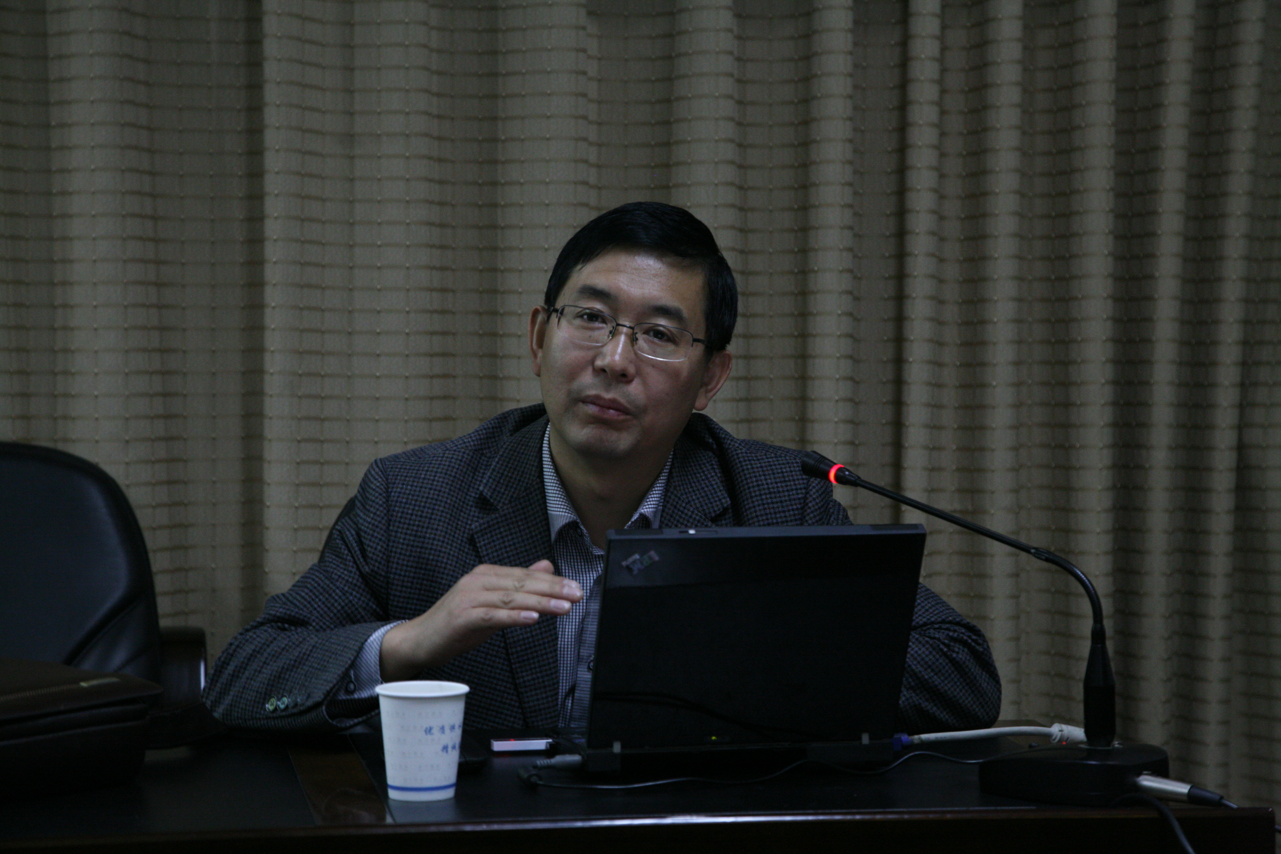 图为:青海民族大学办公室秘书科科长、管理学副教授张翔正在为大家授课。