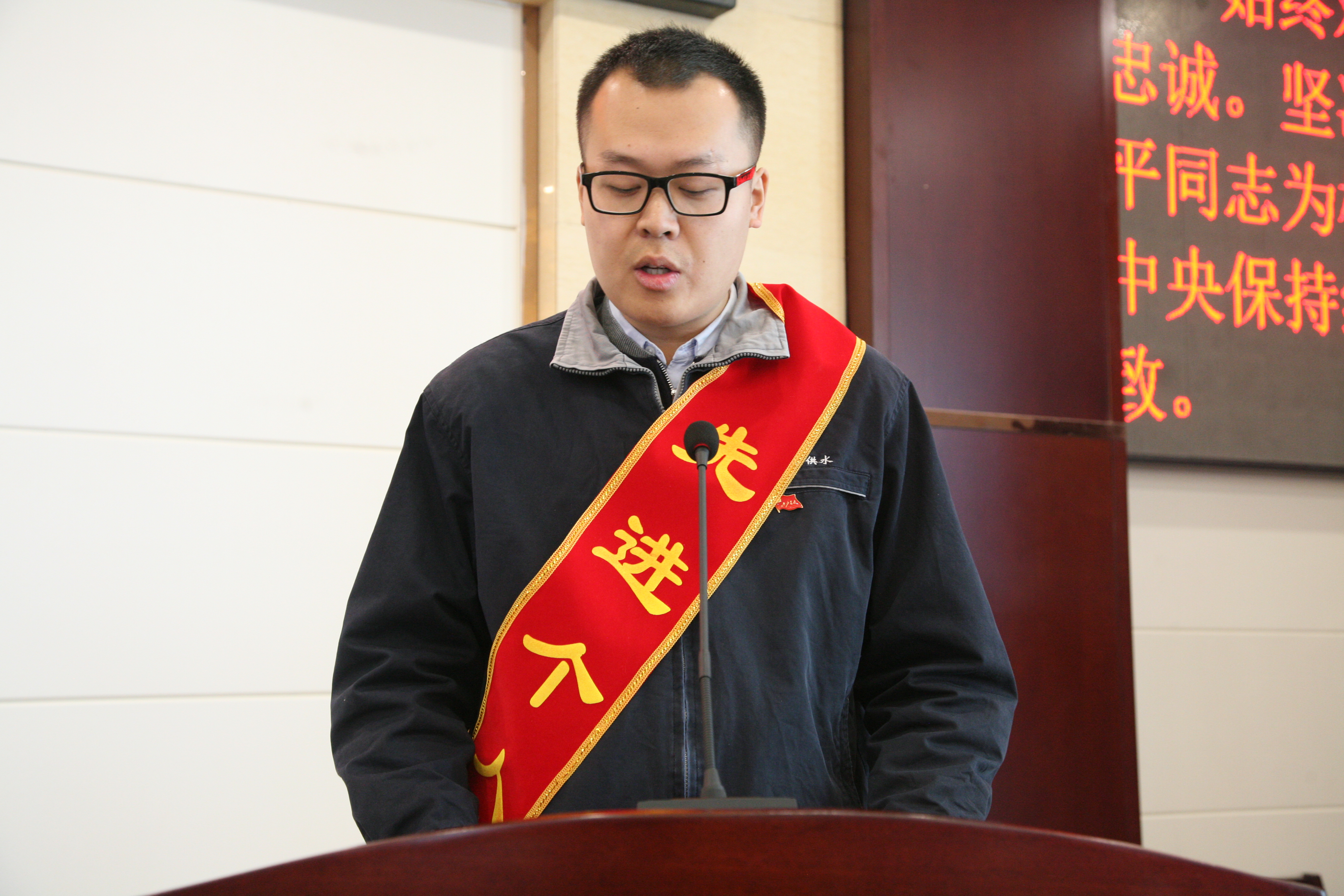 图为:党委副书记、纪委书记冯丽红同志主持大会。