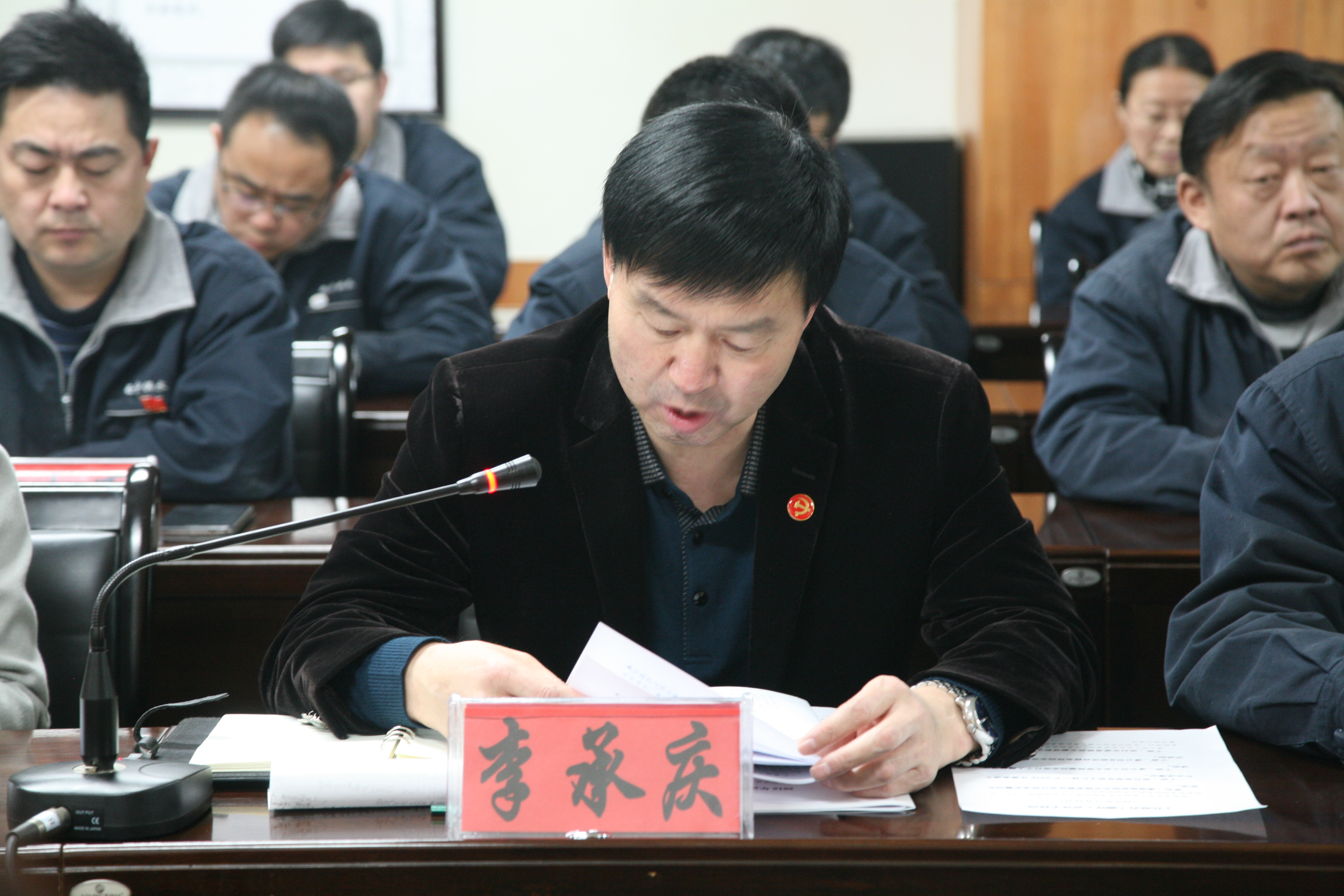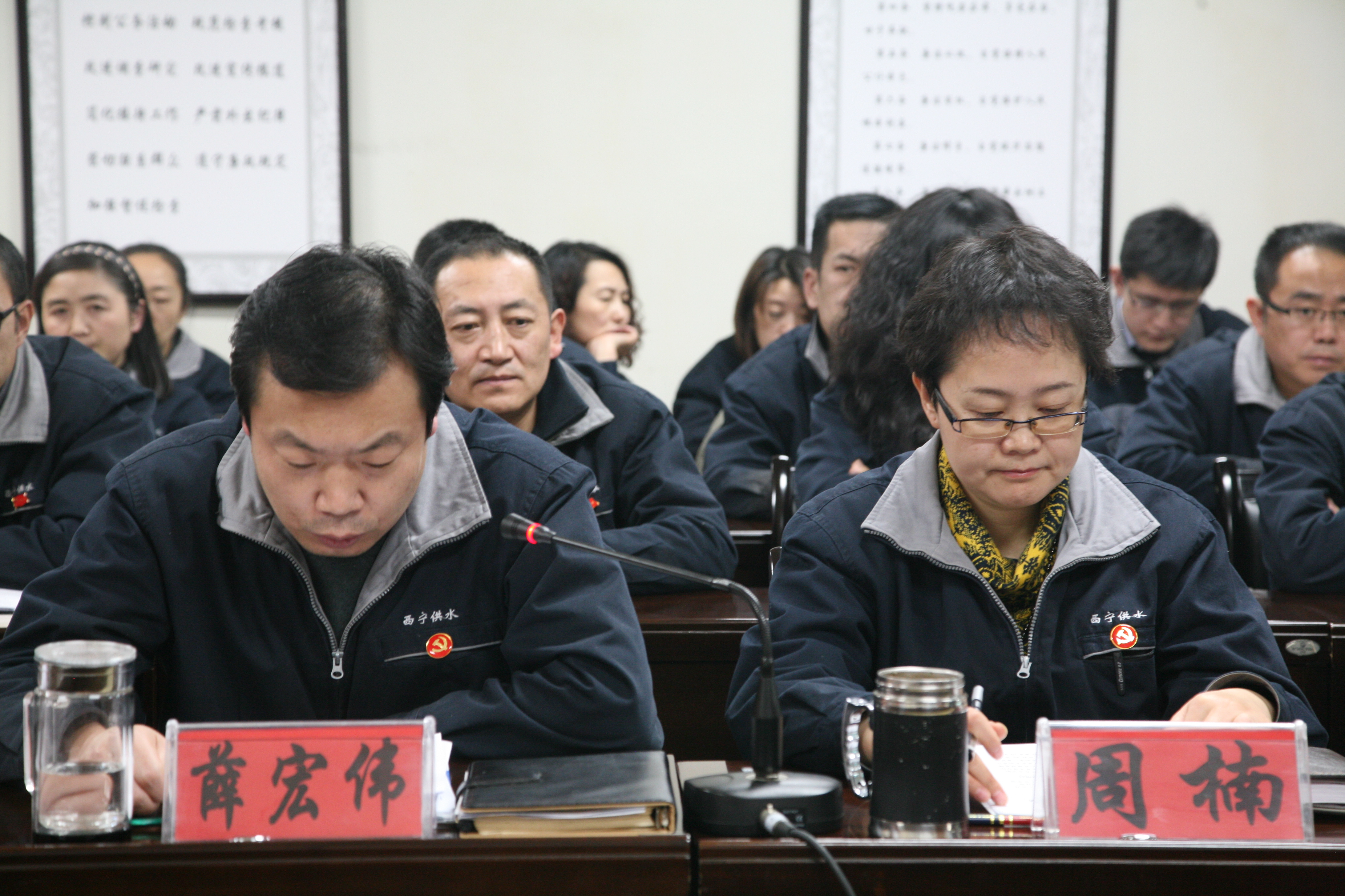 图为公司工会主席周楠、总经济师薛宏伟向考核大会进行个人岗位履职及廉洁自律情况述职。
