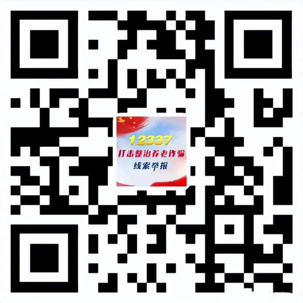 中央政法委举报平台:12337(扫码登陆举报平台,点击打击整治养老诈骗线索举报入口)